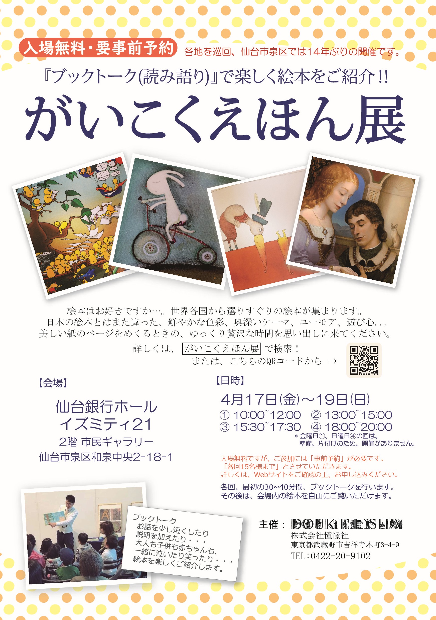 がいこくえほん展 開催日 2026年4月17日(金曜) 開催時間 13:00~20:00 会場 市民ギャラリー 料金 入場無料 事前予約制(下記公式サイトより申込) 問い合わせ 株式会社憧憬社(武田) 070-3523-3963 関連リンク 公式サイト 最新のイベント一覧 月別のイベント一覧 2027年3月のイベント 2026年11月のイベント 2026年8月のイベント 2026年7月のイベント 2026年6月のイベント 2026年5月のイベント 2026年4月のイベント 2026年3月のイベント 2026年2月のイベント 2026年1月のイベント 2025年12月のイベント イベントの検索